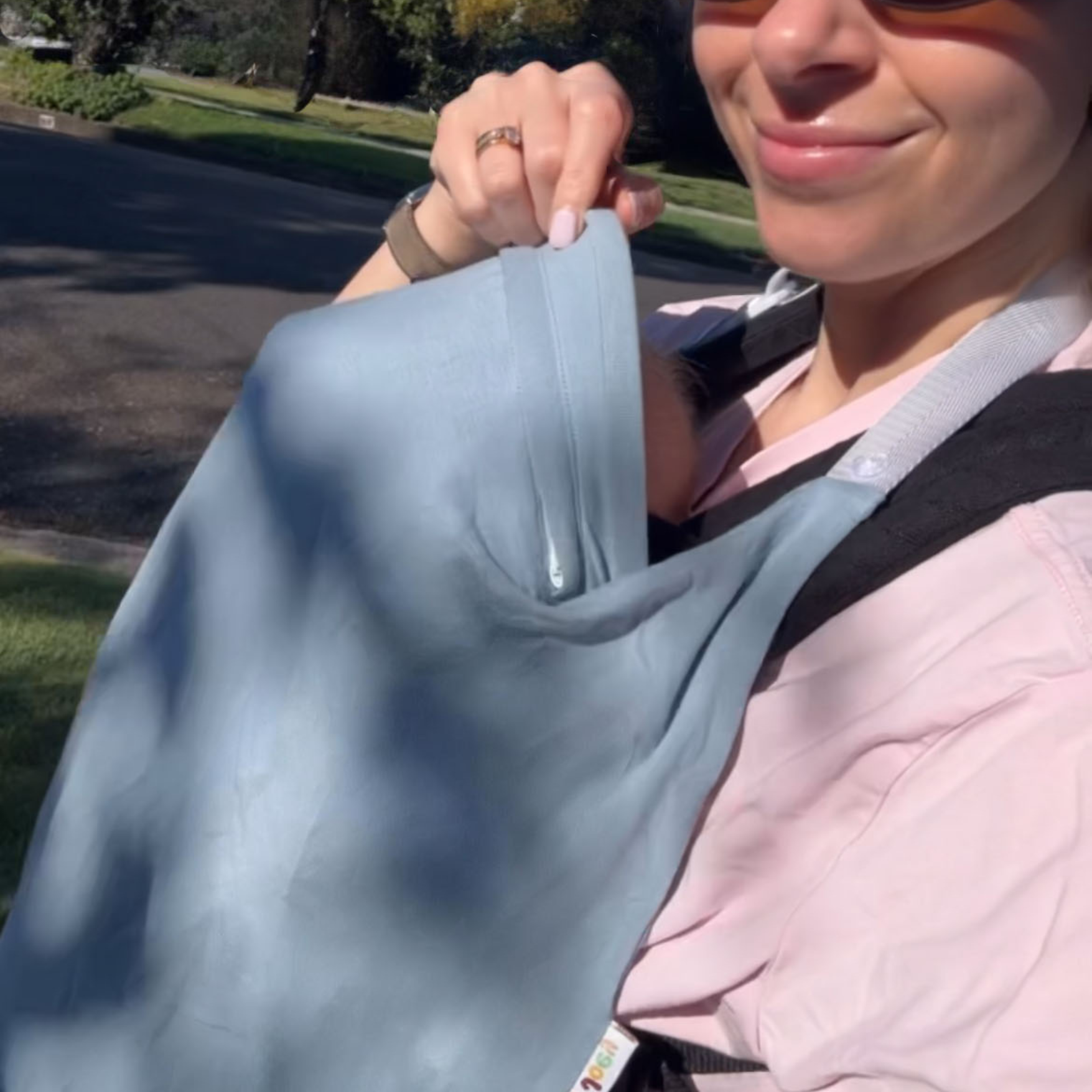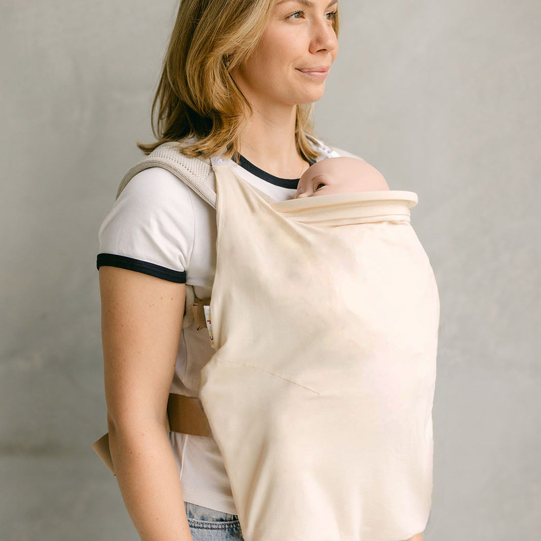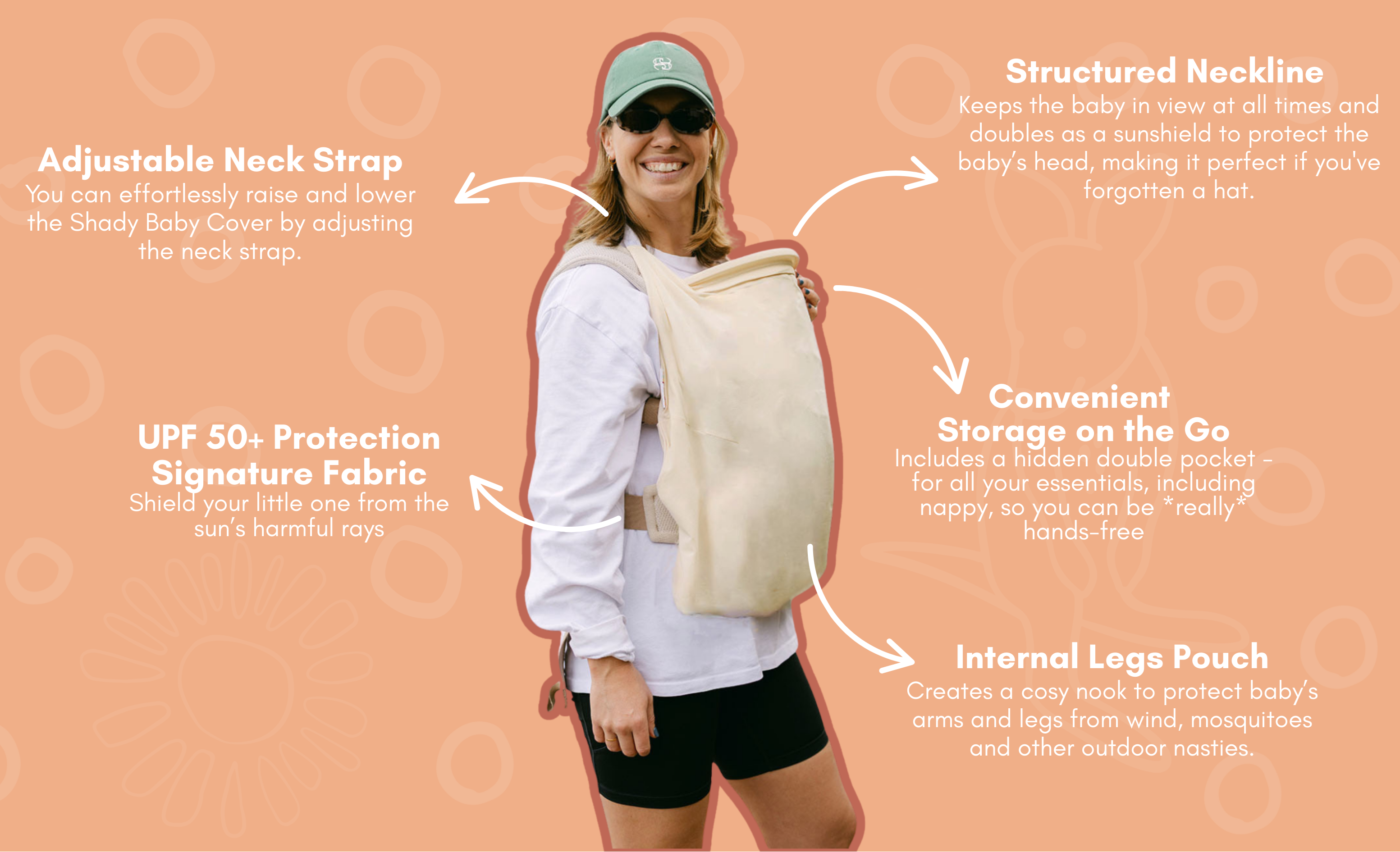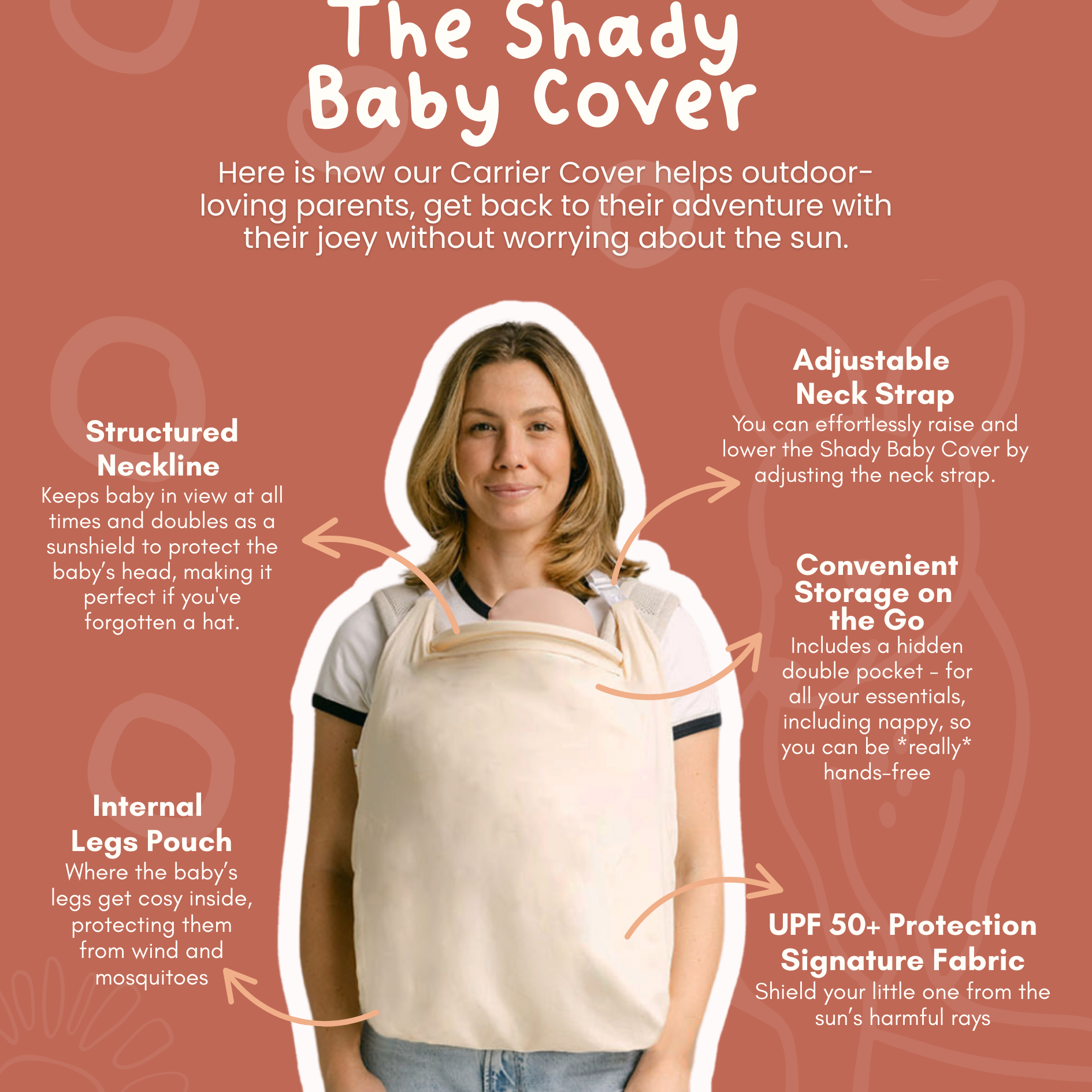 Meet the Shady Baby Carrier Cover by Cosy Joey. Designed to shield your little one‘s delicate skin from the sun with UPF50+ protection that is breathable, lightweight, and easy.