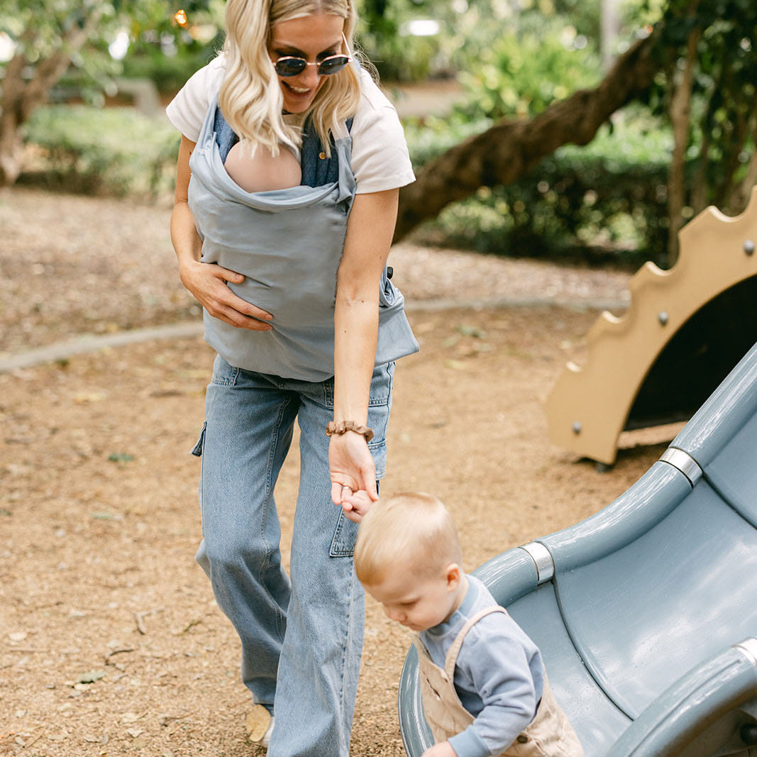 While baby wearing and using the Shady Baby Cover, it is important to be mindful of your babies positioning, airway and airflow to ensure your baby’s safety. To help reduce the risks associated with baby wearing, including suffocation, we’ve ensured the Shady Baby Cover is thoughtfully designed with safety at front of mind. You’ll notice the Shady Baby doesn’t include a hood that covers your baby’s head and has a structured neckline, designed to keep the cover away from your baby’s face —this is intentional, to help keep their airways clear and ensure proper airflow at all times.